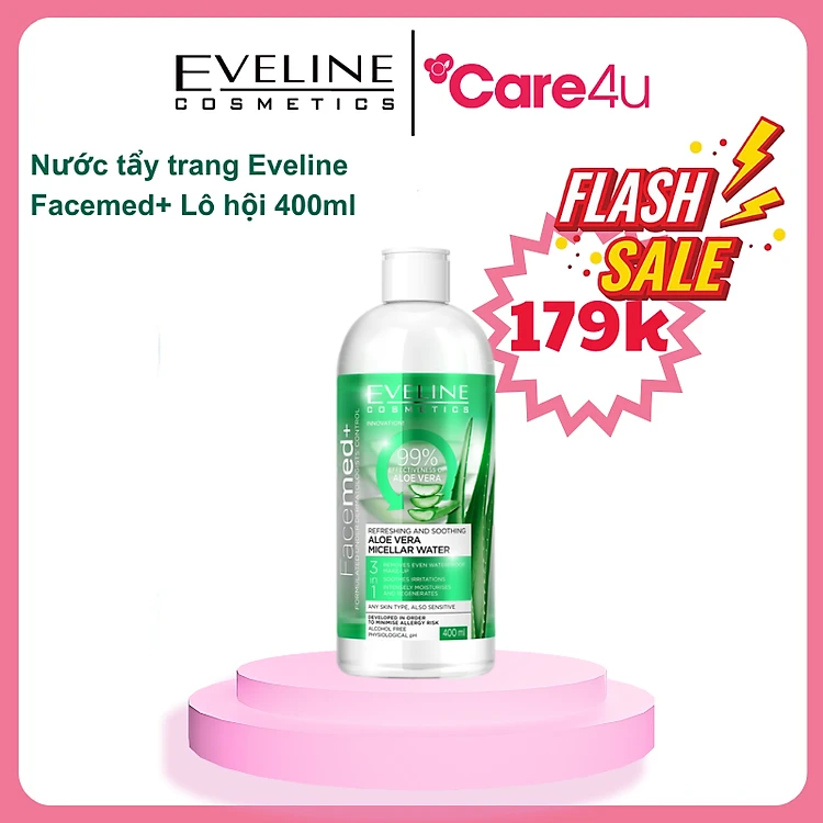 [Deal 179k] Nước tẩy trang làm dịu mát da 3 trong 1 Eveline chiết xuất Lô hội Facemed 400ml