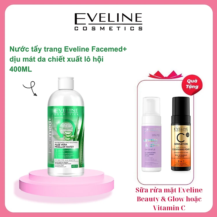 Nước tẩy trang làm dịu mát da 3 trong 1 Eveline chiết xuất Lô hội Facemed 400ml