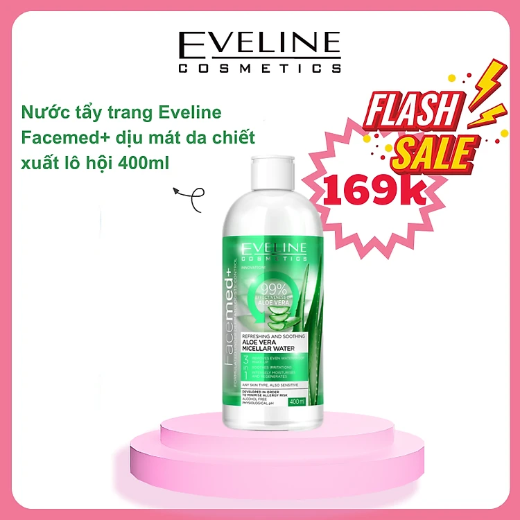 [Deal 169k] Nước tẩy trang làm dịu mát da 3 trong 1 Eveline chiết xuất Lô hội Facemed 400ml