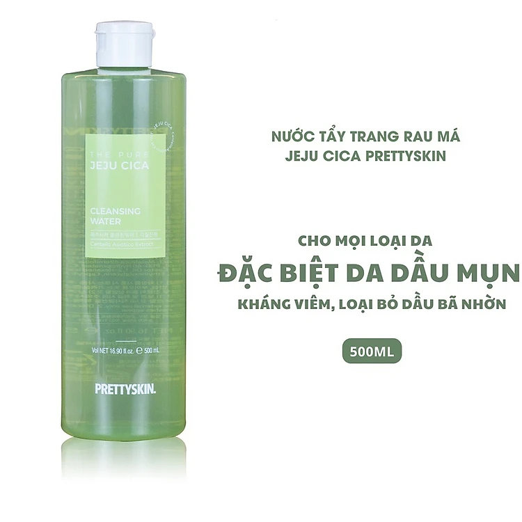 Nước Tẩy trang Rau Má Cho Da Dầu Mụn Pretty Skin The Pure Jeju Cica Cleansing Water 500ml