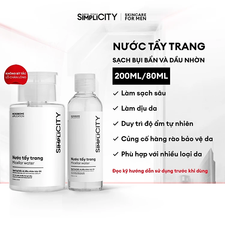 Nước tẩy trang sạch bụi bẩn và dầu nhờn tức thì Men Stay Simplicity Micellar water 80ml/200ml