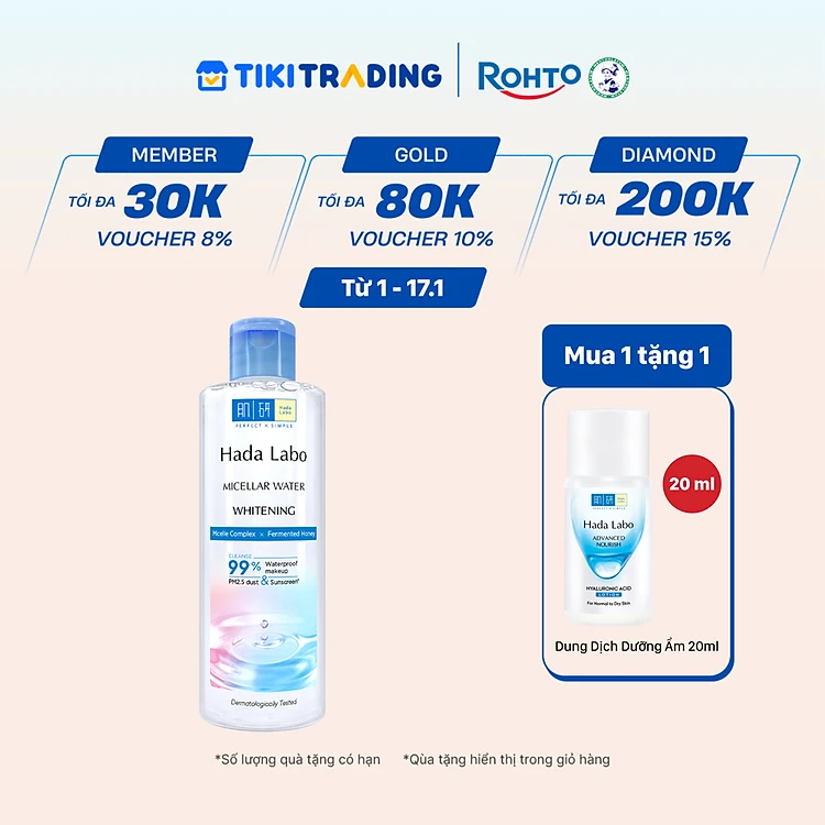 Nước tẩy trang sạch sâu dưỡng trắng Hada Labo Micellar Water Whitening 240ml