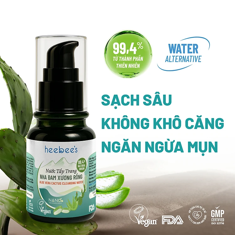 Nước Tẩy Trang Thuần Chay Nha Đam Xương Rồng Heebee’s Sạch Sâu, Dịu Nhẹ, Ngừa Mụn, Cho Da Nhạy Cảm, Không Khô Da 110ml
