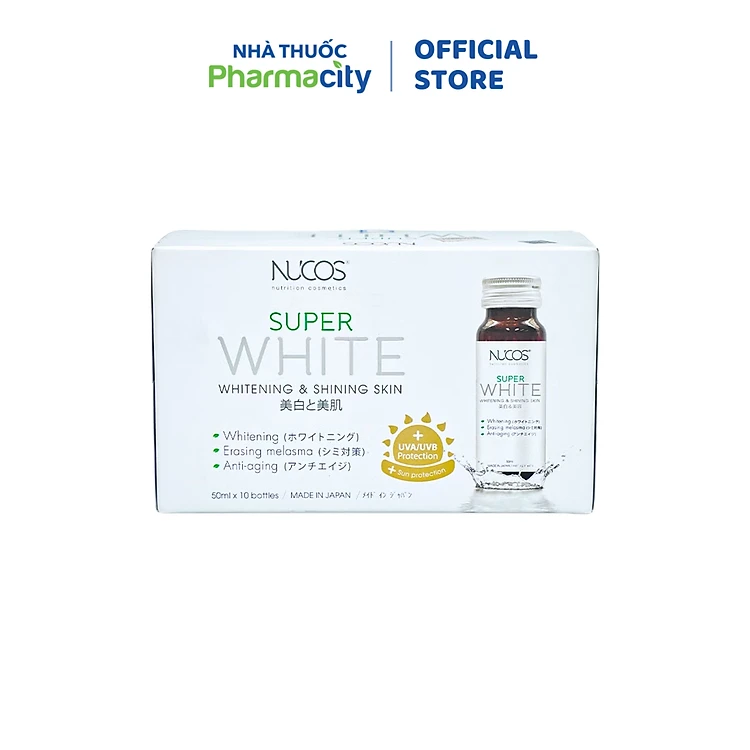 Nước uống Nucos hỗ trợ bổ sung collagen giúp dưỡng trắng và làm sáng da Super White (Hộp 10 chai)