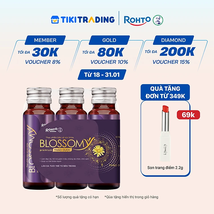 Nước uống collagen thảo dược giúp đẹp da, hỗ trợ ngủ ngon Blossomy Premium lốc 03 chai x 50ml