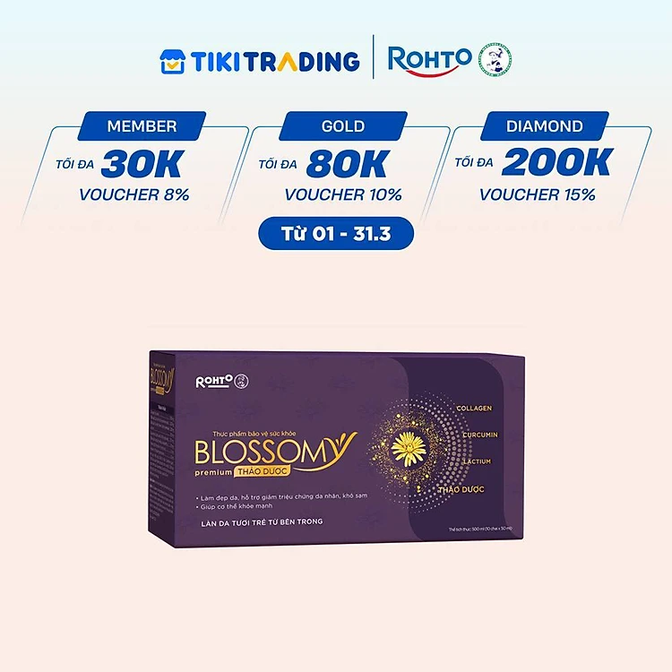 Nước uống collagen thảo dược giúp đẹp da, hỗ trợ ngủ ngon Blossomy Premium lốc 10 chai x 50ml