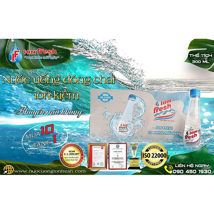 Nước uống đóng chai iON kiềm 300ml - iON FRESH thùng 24 chai