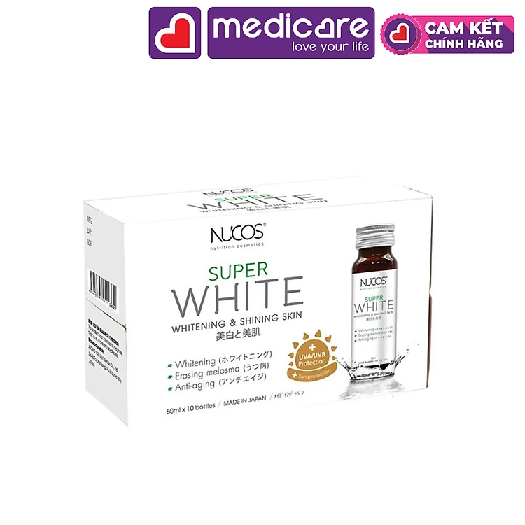 Nước Uống NUCOS Super White Bổ Sung Dưỡng Chất Cho Da, Giúp Da Sáng Đẹp hộp 10 chai 50ml