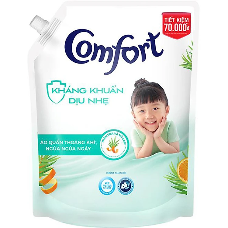 • Nước xả vải em bé Comfort Kháng Khuẩn Dịu Nhẹ Túi 2.4L - dùng cho quần áo em bé từ sơ sinh-2 tuổi. Nay Comfort giới thiệu nước xả vải em bé Comfort Kháng Khuẩn Dịu Nhẹ phù hợp với quần áo trẻ nhỏ từ 2 tuổi trở lên. Comfort Kháng Khuẩn Dịu Nhẹ được thiết kế với tính năng nổi trội, phù hợp với sự năng động của bé yêu: