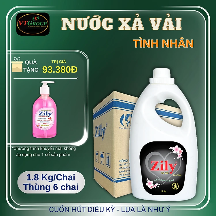 Nước xả vải Zily - 1.8kg (6 chai/thùng) - Tặng 1 Chai Nước Rửa Tay Zily 500Gr