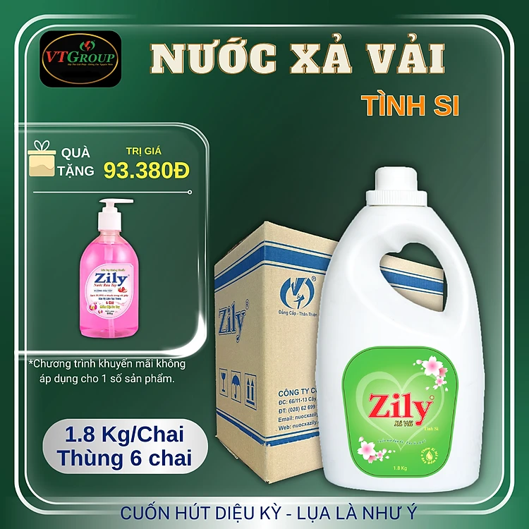 Nước xả vải Zily - 1.8kg (6 chai/thùng) - Tặng 1 Chai Nước Rửa Tay Zily 500Gr