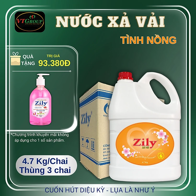 Nước xả vải Zily chai 4.7Kg (3 chai/ Thùng) - Tặng 1 Chai Nước Rửa Tay Zily 500Gr