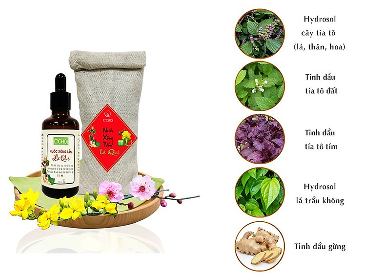 Nước Xông Tắm Lá Quê là sản phẩm được khai sinh bằng nguồn nguyên liệu thuần nông, hoàn hảo trong sự kết hợp giữa Hydrosol đậm đặc của cây tía tô (nấu toàn bộ thân, lá và hoa tía tô), Hydrosol đậm đặc của lá trầu không và Tinh dầu gừng. Bộ ba hoàn hảo từ cây lá củ trong vườn nhà sẽ khơi gợi trong tâm trí người dùng hương vị của quê hương.
