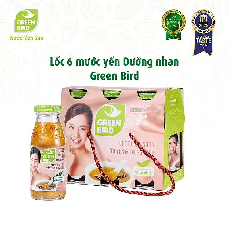 Nước Yến Dưỡng Nhan Tổ Yến Và Trùng Thảo Green Bird Giải Khát Thanh Nhẹ Chai 185ml
