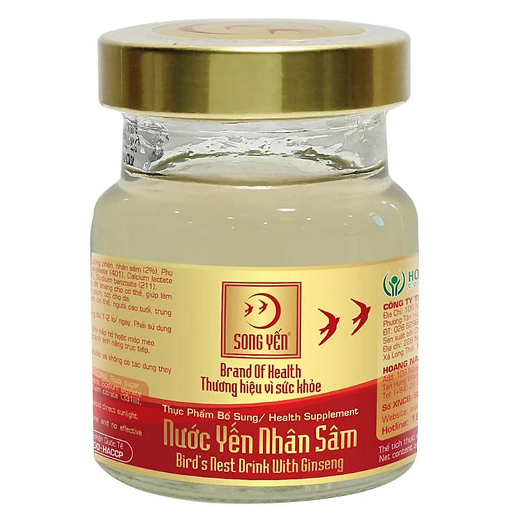 - Thành phần định lượng: Nước, tổ yến (13%), nhân sâm tươi (2%), đường Phèn, phụ gia thực phẩm.