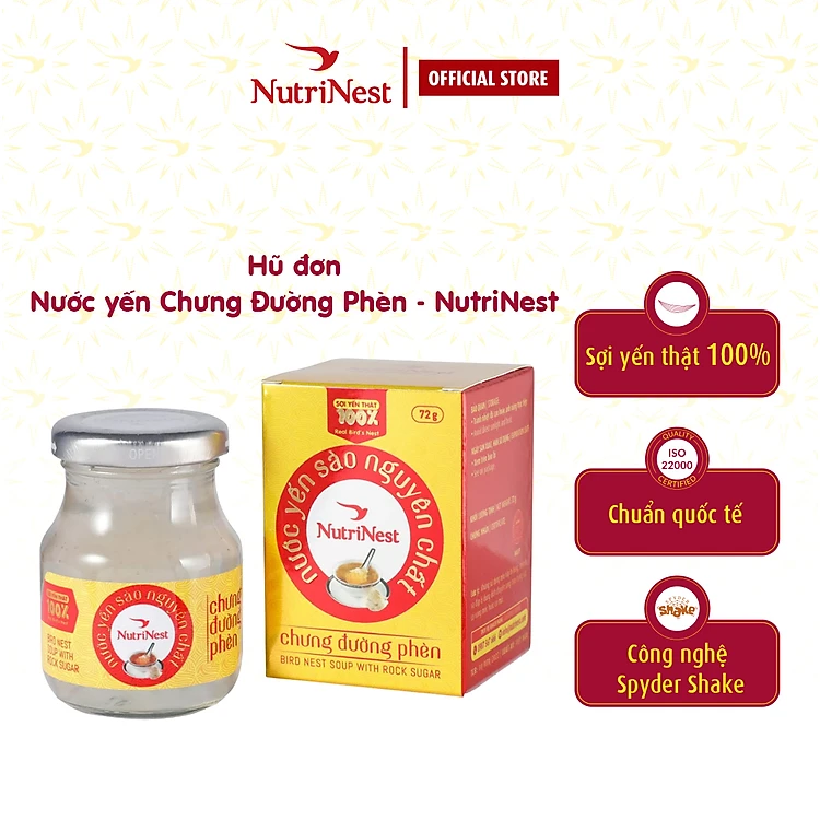 Nước Yến Sào Nguyên Chất Chưng Đường Phèn NutriNest Hữu Cơ Lành Mạnh - Hũ 72g