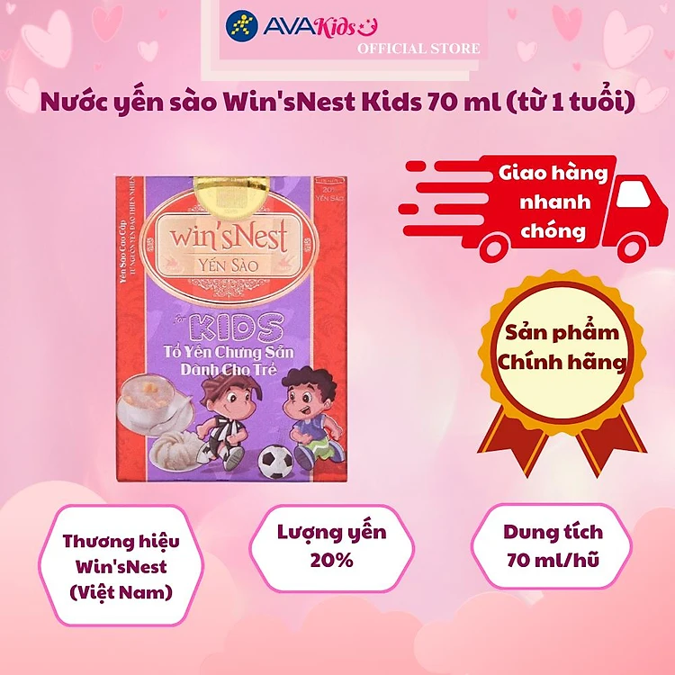 Sản phẩm nước yến sào Win'sNest Kids 70 ml là lựa chọn dinh dưỡng tốt được khuyên dùng cho trẻ từ 1 tuổi, người lớn tuổi và người cần phục hồi sức khoẻ.