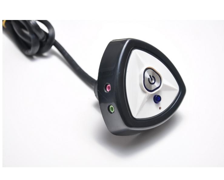 Sản phẩm đơn giản, gọn nhẹ có thể đặt dễ dàng trên bàn với nhiều chức năng được sử dụng nhiều nhất như mở nguồn, reset, Hub USB 2 cổng, Jack 3.5 cho mic và loa.