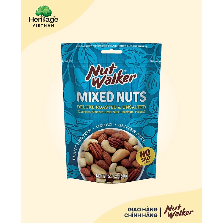 Nut Walker - Gói 150gr Hạt hỗn hợp cao cấp rang không muối (Deluxe Roasted & Unsalted Mixed Nuts)