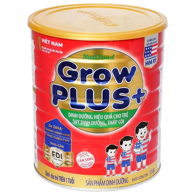 Nutifood GrowPLUS+ Đỏ 1500 Gr : sữa dành cho trẻ từ 1- 10 tuổi bị suy dinh dưỡng thấp còi