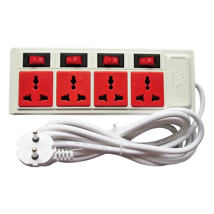 - Ổ cắm có 4 công tắc tương ứng với 4 lỗ cắm có chức năng tự động ngắt điện khi dòng điện vượt quá tải cho phép. Hai chân phích cắm làm bằng hợp kim chống gỉ, đúc trong nhựa cứng chịu nhiệt, đảm bảo tiếp điện tốt và đầu cắm không bị biến dạng.