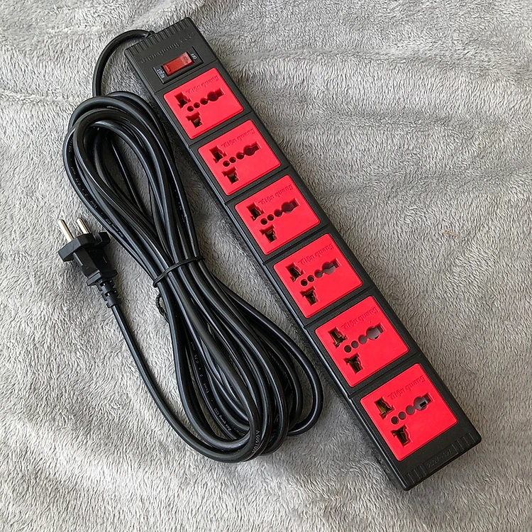 Ổ Cắm 6 Lỗ 3 Chấu Dây 5 Mét Điện Quang ĐQ ESK 5BR 63ECO - Đen Đỏ