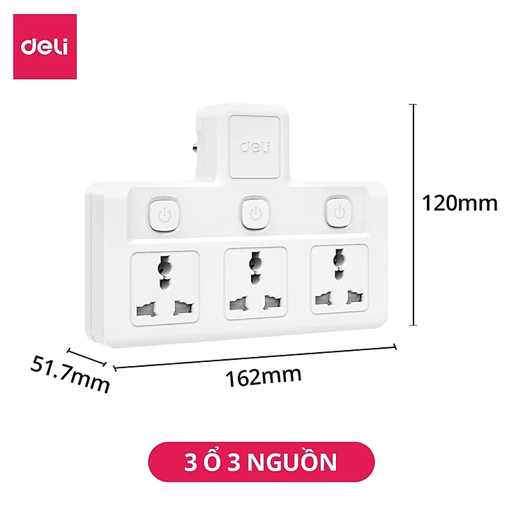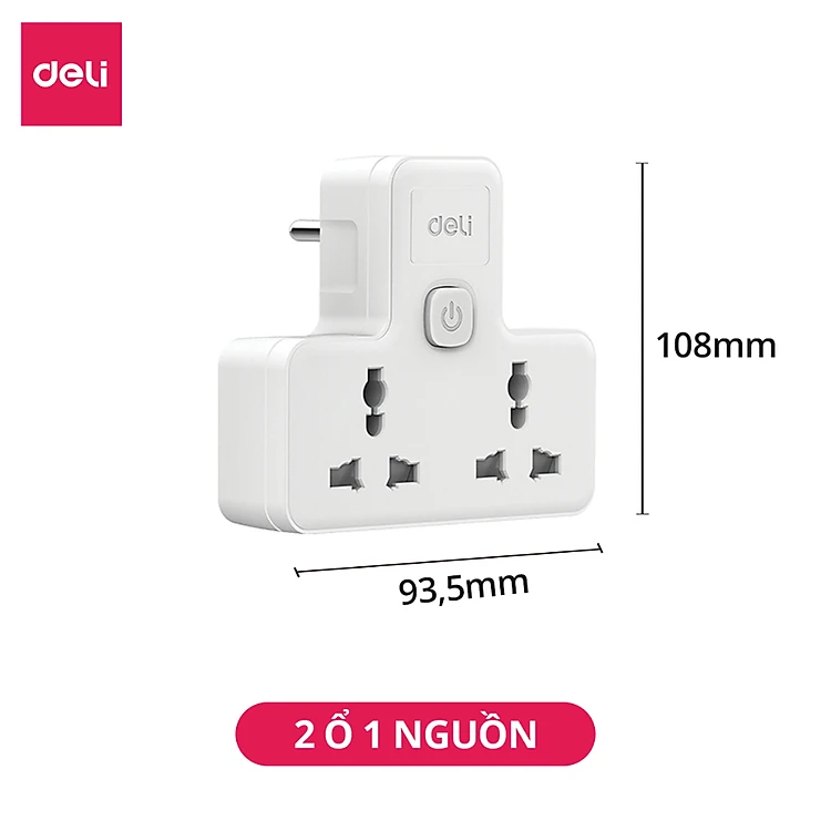 Ổ Cắm Chia Điện Deli, Ổ Cắm Điện Chữ T Công Suất 2500W Tích Hợp Cổng USB &TypeC Sạc Nhanh 20W
