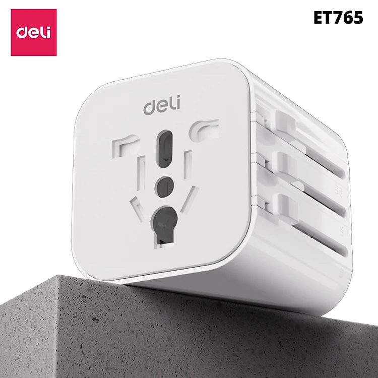 Ổ Cắm Chuyển Đổi Du Lịch Deli Sạc Nhanh 70W Củ Sạc Đa Năng DELI 4 Loại Chân Cắm Chuyển Đổi Dòng Điện