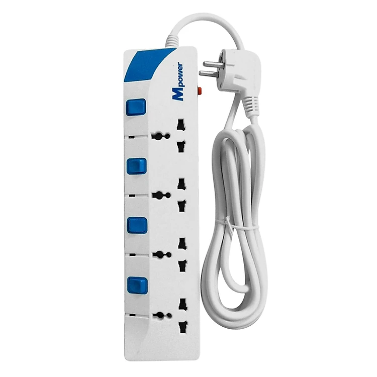 - Ổ Cắm Điện 4 Lỗ 3 Chấu 3m Mpower MP-243S (2500W) gồm 4 ổ cắm 3 chân, có thể sử dụng đồng thời cho nhiều thiết bị điện khác nhau như: quạt, tivi, sạc điện thoạ rất tiện lợi.