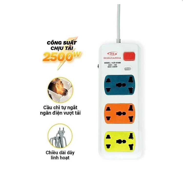 Ổ Cắm Điện Có Cầu Chì Tự Động 6 Lỗ Dây 3m HJD-02B