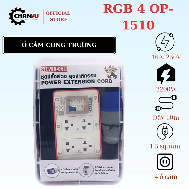 Ổ Cắm Điện Công Nghiệp, Đầu Cắm Tròn Công Nghiệp SUNTECH, Có Aptomat, tiêu chuẩn TIS đến từ Thái Lan