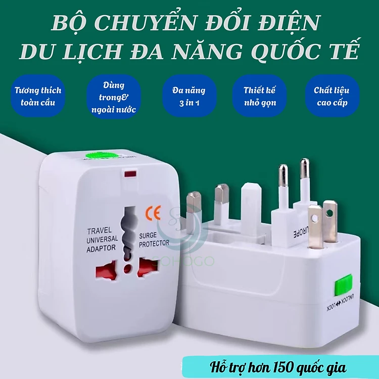 Bộ Chuyển Đổi Điện Du Lịch Đa Năng Quốc Tế- Ổ Cắm Chuyển Đổi Đa Chuẩn Cắm Toàn Cầu- Adapter Du Lịch 4 Trong 1 – Có Bảo Vệ Quá Áp- Travel Universal Adapter with Surge Protector- Ổ Cắm Quốc Tế Đa Năng – Tương Thích 150+ Quốc Gia
