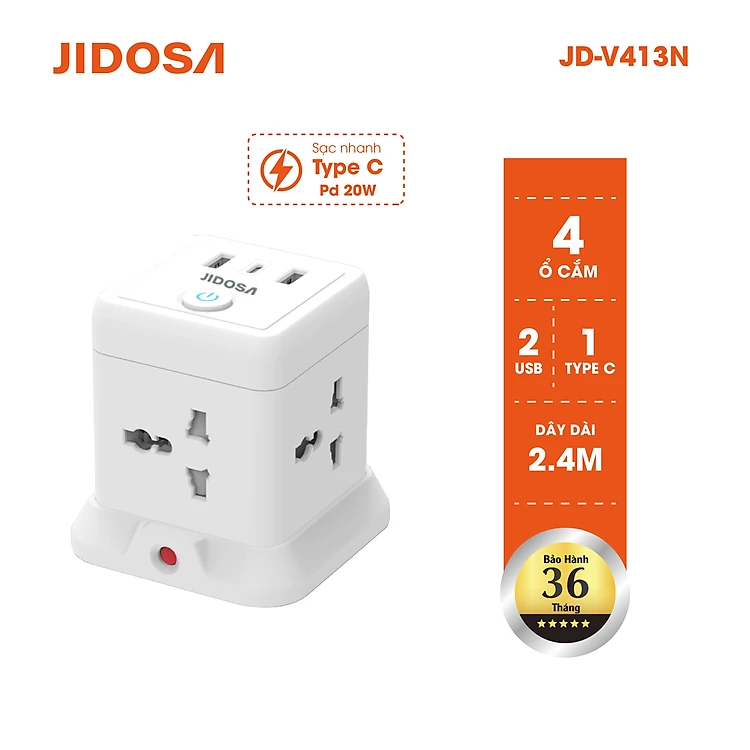 Ổ Cắm Điện JIDOSA Tích Hợp Ổ USB Và Type C Hình Tháp Đa Năng Công suất 3000w Thiết Kế Thông Minh