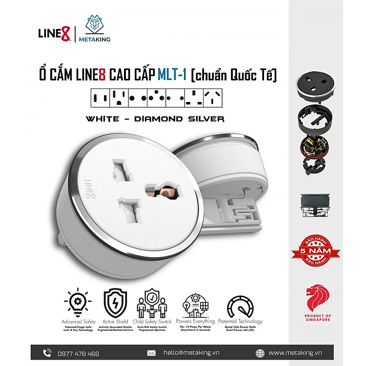 Ổ Cắm Điện Line8 MLT-1 - Body Màu Trắng - Chuẩn Quốc Tế - Chính hãng