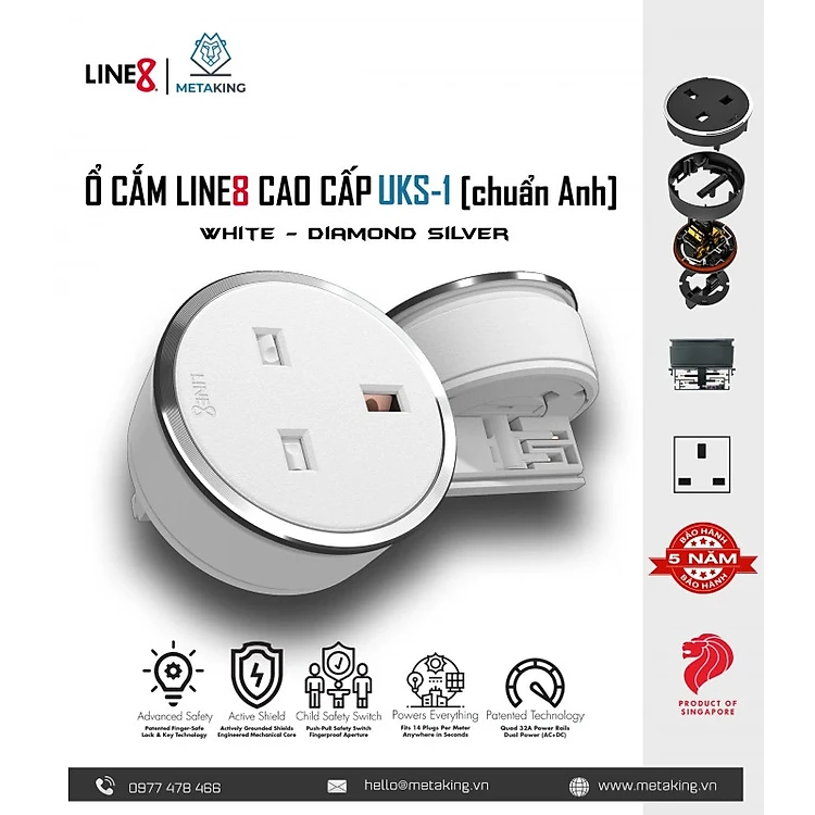 Ổ Cắm Điện Line8 UKS-1 - Body Màu Trắng - Chuẩn Anh