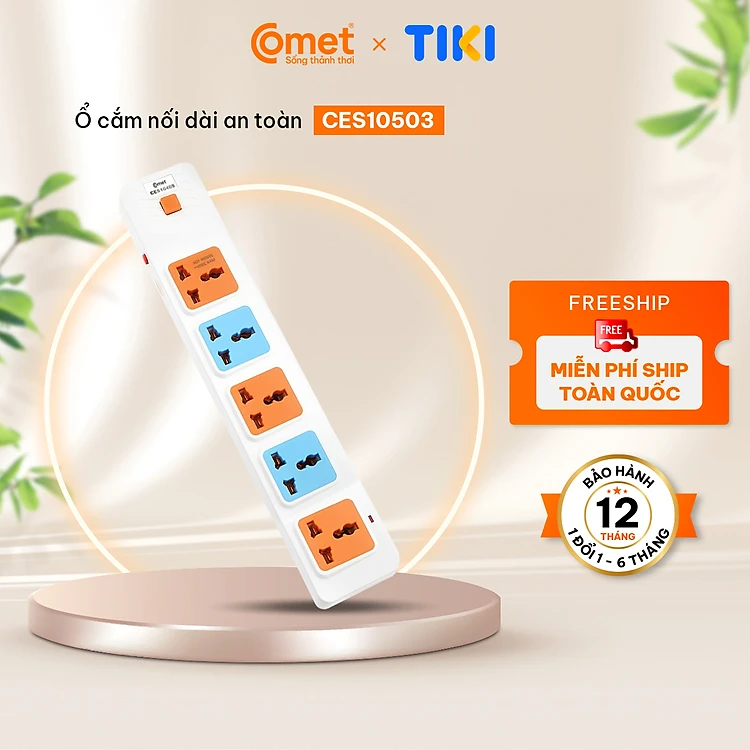 Ổ Cắm Điện Nối Dài COMET CES10503 2500W, Dây Dài 3M, 5 Lỗ 3 Chấu, Chất Liệu Nhựa PP Chống Cháy, Có Cầu Chì Bảo Vệ