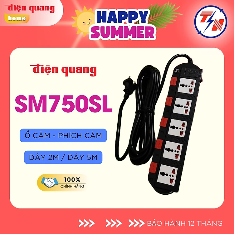 Ổ cắm Điện Quang ĐQ ESK SM750SL (5 lỗ 3 chấu, 5 công tắc)