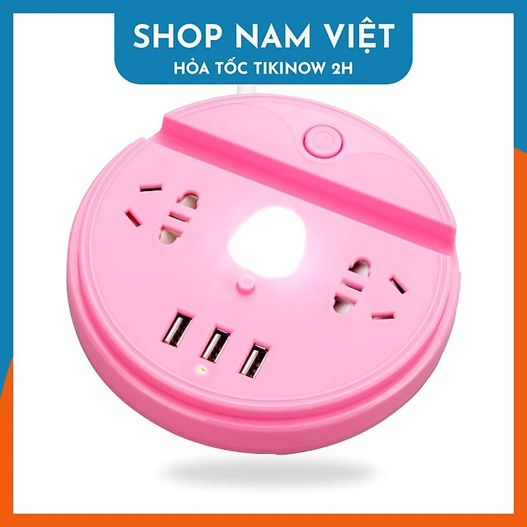 Ổ Cắm Điện Tròn 3 Cổng USB Chống Giật, Có Đèn Ban Đêm, Kèm Đế Điện Thoại, Chịu Tải 2500W