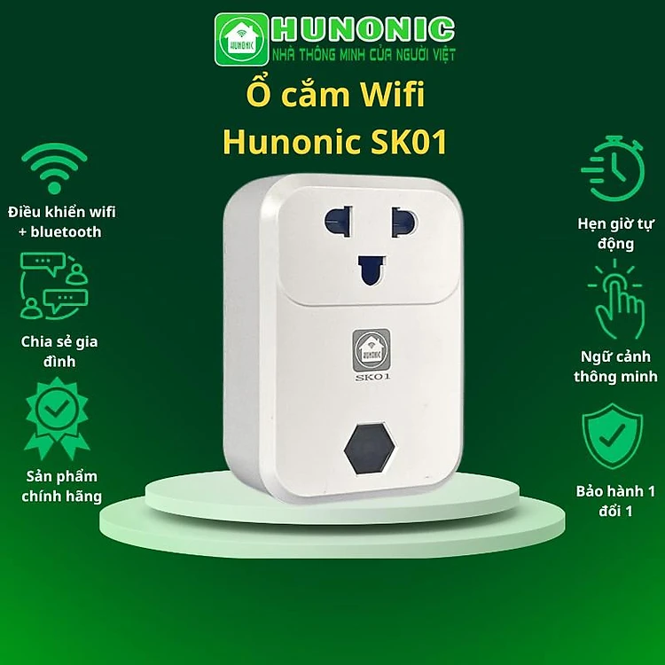 Ổ Cắm Wifi Thông Minh Hunonic SK01 Công Suất Lớn 4000W Điều Khiển Từ Xa Bằng Điện Thoại Thông Qua Wifi