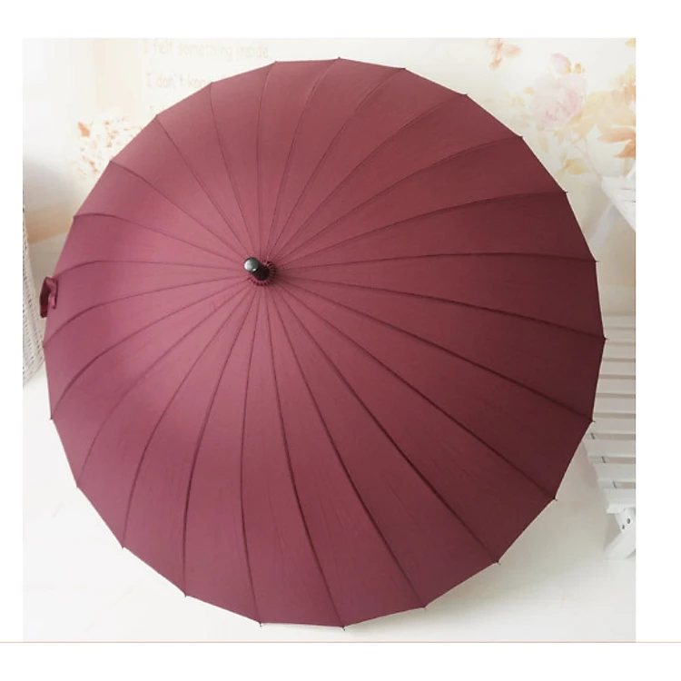 Ô cán dài đi mưa cỡ lớn 24 nan chồng lật cao cấp màu đỏ đô