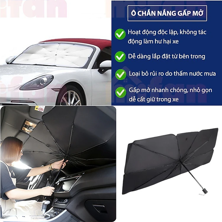 Ô che nắng kính trước xe ô tô, Dù che nắng kính lái Densu xe hơi bảo vệ nội thất ô tô chống nắng, chống tia UV hiệu quả dù che nắng kính lái xe hơi chống nóng, bảo vệ nội thất xe khi đỗ trời nắng