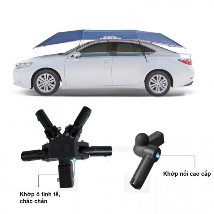 Ô che ô tô, dù che xe hơi của chúng tôi là sản phẩm cao cấp, chân đế 2 tấm cao su giác mút có thể gắn chặt vào nóc xe, có 1 sợi đai chống chộm kẹp cửa, 4 dây giữ có thể buộc vào tay nắm xe. Sản phẩm của chúng tôi cao cấp khác hẳn các sản phẩm 4 chân chống trên thị trường. Vải của chúng tôi là vải 210D. Size lớn 4m x 2.1m.