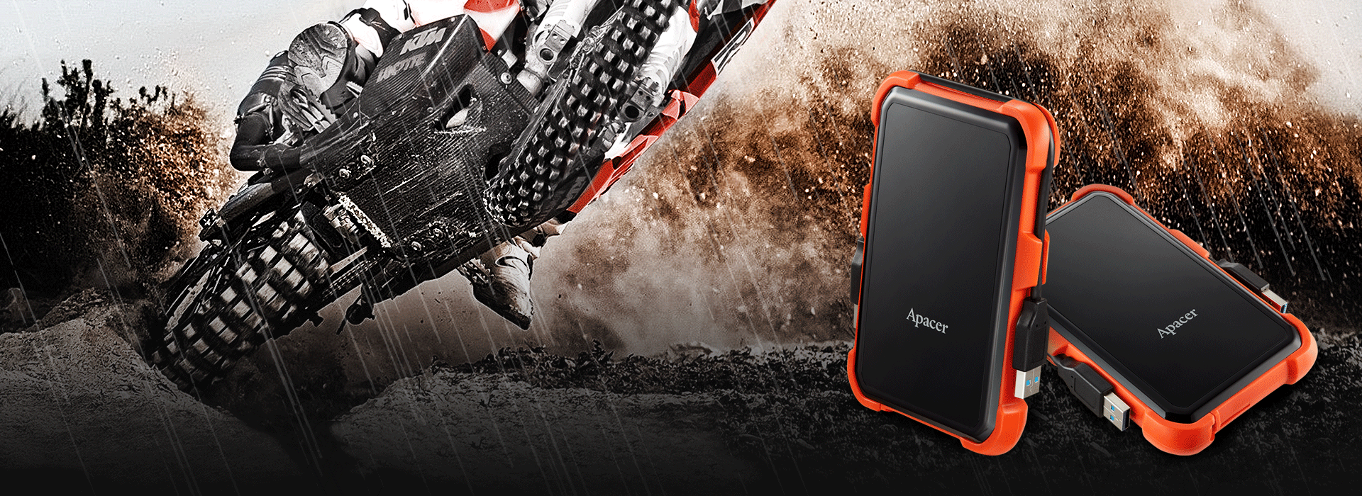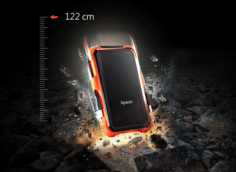 Military-Grade - Đạt tiêu chuẩn của quân đội Ổ cứng di động chống Sock Apacer AC630 đạt tiêu chuẩn quân đội MIL-STD-810G 516.6 Procedure IV (Transit Drop Test), có thể rơi từ độ cao 1.22m mà không làm mất dữ liệu.