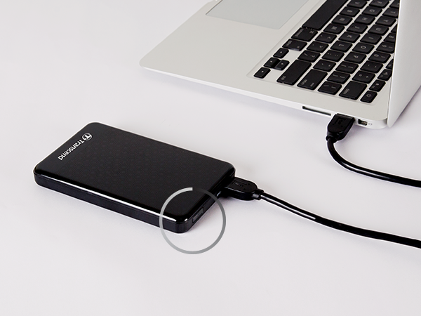 Ổ cứng di động Transcend Storejet trang bị nút sao lưu tự động giúp sao lưu dữ liệu của bạn chỉ bằng một cú chạm. Nút chạm này cho phép bạn kết nối ổ cứng và PC/Laptop mà không cần phích cắm hoặc lắp lại.