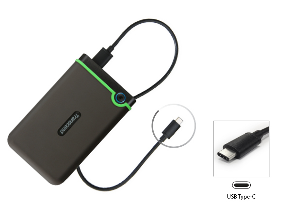 Ổ cứng gắn ngoài StoreJet 25MC đi kèm với đầu nối USB Type-C mới nhất để dễ sử dụng hơn. Nó có thể được định hướng ngược lại và tương thích với các thiết bị PC thế hệ tiếp theo có cổng USB Type-C.