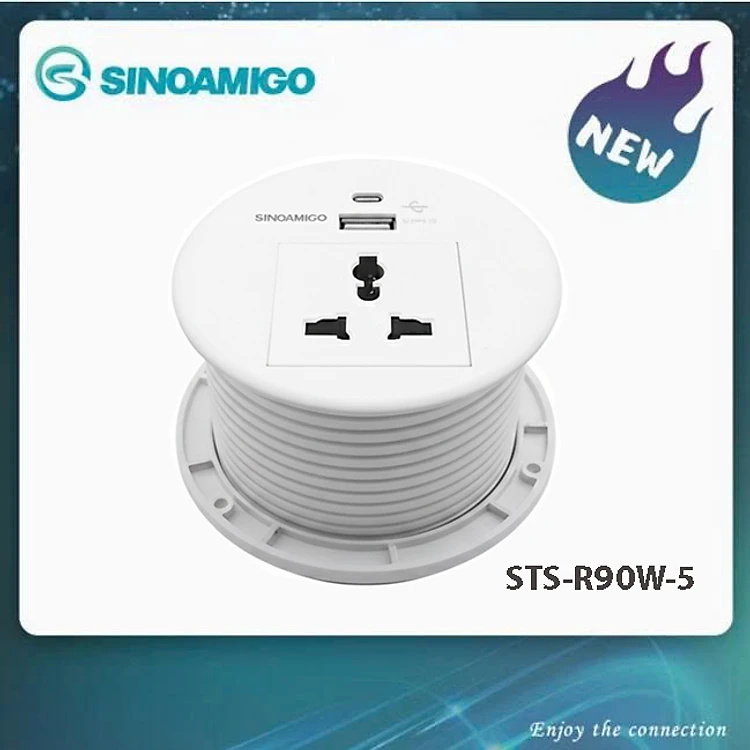 Ổ điện âm bàn hình tròn Sinoamigo STS-R90W-2, có cổng sạc USB A+C, ổ điện đa năng - Hàng chính hãng