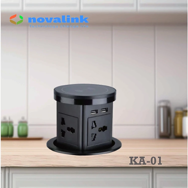 Ổ điện nâng hạ thông minh lắp âm bàn đảo Novalink KA-01, tích hợp sạc không dây - Hàng nhập khẩu chính hãng