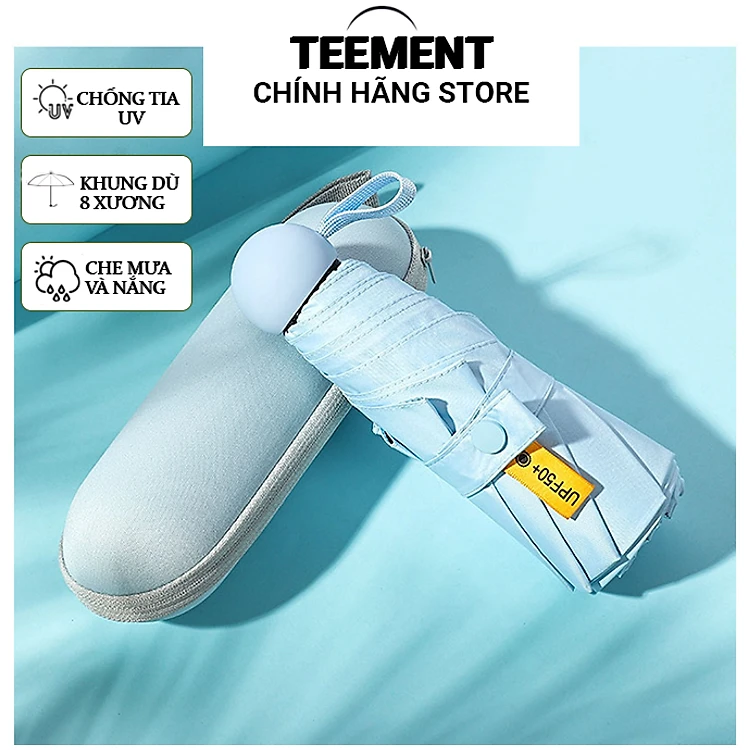 Ô Dù Gấp Gọn Mini Teement 19cm, Dù Che Mưa, Dù Chống Tia Uv Mini Siêu Gọn 8 Xương, Có Hộp Đựng Chống Sốc - Hàng Chính Hãng