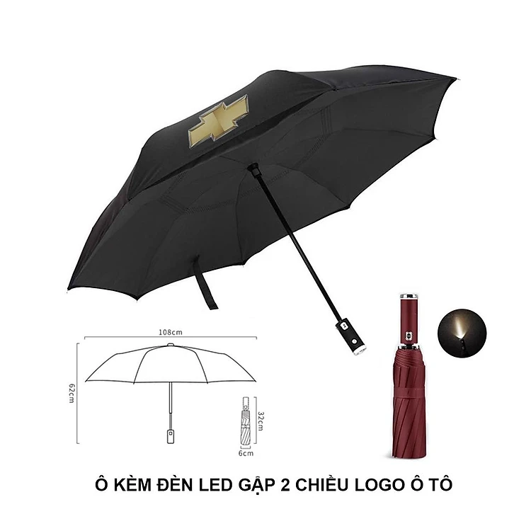 Ô dù thời trang tự động 2 chiều một nút bấm chống tia UV có đèn LED xoay 10 nan logo xe hơi cao cấp