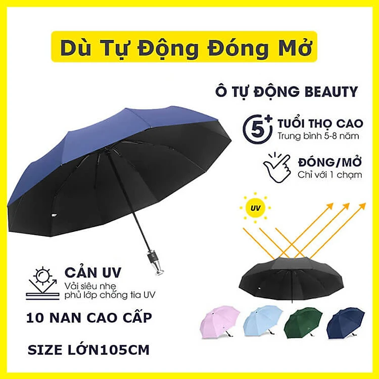 Ô dù tự động đóng mở 2 chiều chống tia UV, ô che mưa che nắng 10 nan cầm tay gấp gọn chống thấm hiệu quả - R